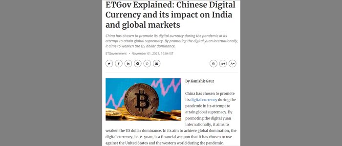 Kanishk Gaur, Founder, India Future Foundation, shared his views with ETGovernment.com on “Chinese Digital Currency and its impact on India and global markets. ”