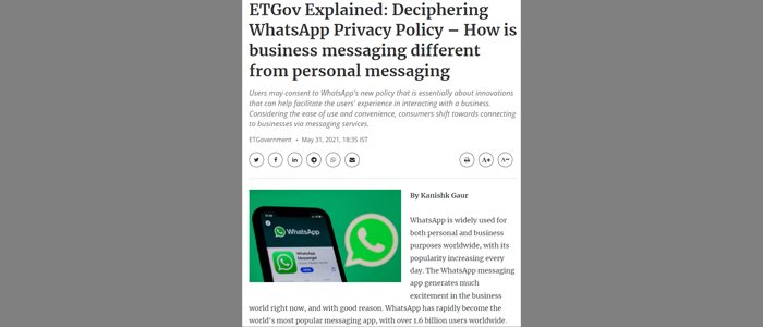 Kanishk Gaur, Founder, India Future Foundation, shared his views on “Deciphering WhatsApp Privacy Policy,” in ETGovernment.com.