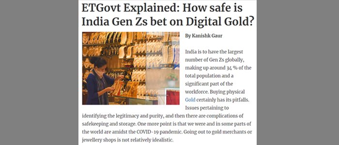 Kanishk Gaur, Founder, India Future Foundation, shared his views with ETGovernment.com on “How safe is India Gen Zs bet on Digital Gold.”