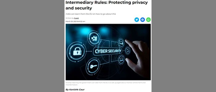 Kanishk Gaur, Founder, India Future Foundation penned down his thoughts on “Intermediary Rules: Protecting Privacy and Security” for The Financial Express.