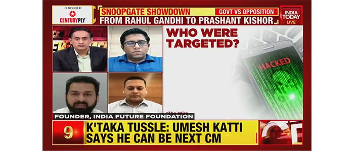 Kanishk Gaur in a discussion with Rahul Kanwal of India Today on the recent Pegasus spyware snooping issue impacting India.