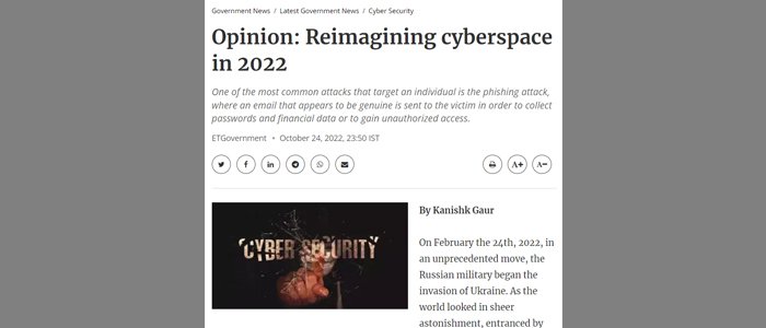 Kanishk Gaur, Founder, India Future Foundation, shared his views with ETGovernment.com on “Reimagining cyberspace in 2022.”
