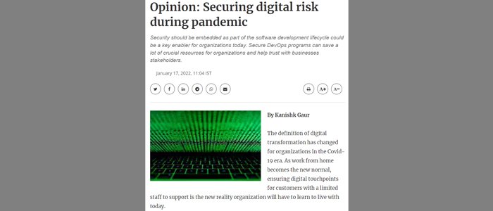 Kanishk Gaur, Founder, India Future Foundation, shared his views with ETGovernment.com on “Securing Digital Risk During the Pandemic.”