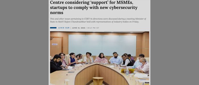 Kanishk Gaur was part of a discussion with Industry leaders and stakeholders on the new directives by India’s National Computer Emergency Response Team (CERT-IN) for reporting cybersecurity incidents. The event was covered by ‘Moneycontrol’.