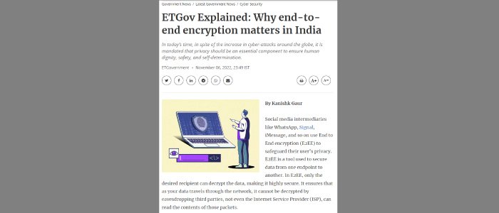 Kanishk Gaur, Founder, India Future Foundation, shared his views with ETGovernment.com on “Why end-to-end encryption matters in India.”